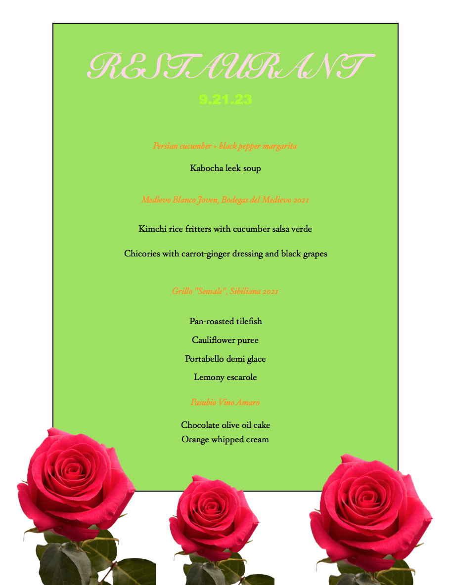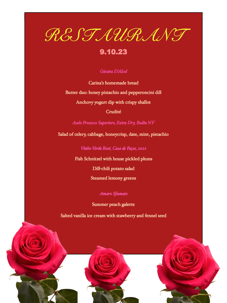 RESTAURANT is an ongoing project by Sarah Hombach and Carina Geraci. Please feel free to browse our past dishes and menus; for inquiries or bookings, please email sarahelizhombach@gmail.com and carinageraci@gmail.com.